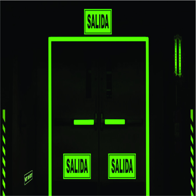 Cinta Fotoluminiscente adhesiva absorbe y almacena energía lumínica cuando es expuesta a cualquier fuente de luz convencional (luz diurna ó luz eléctrica) y la emite en la oscuridad durante un largo periodo de tiempo. Emite la luz sin ningún tipo de intervención humana, mecánica ó eléctrica.